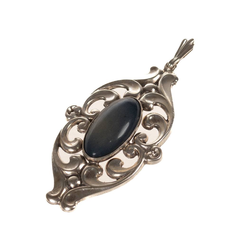 Jugendstil Anhänger Silber mit Nunkirchner Jaspis Gebr. Falk Pforzheim (D3507)