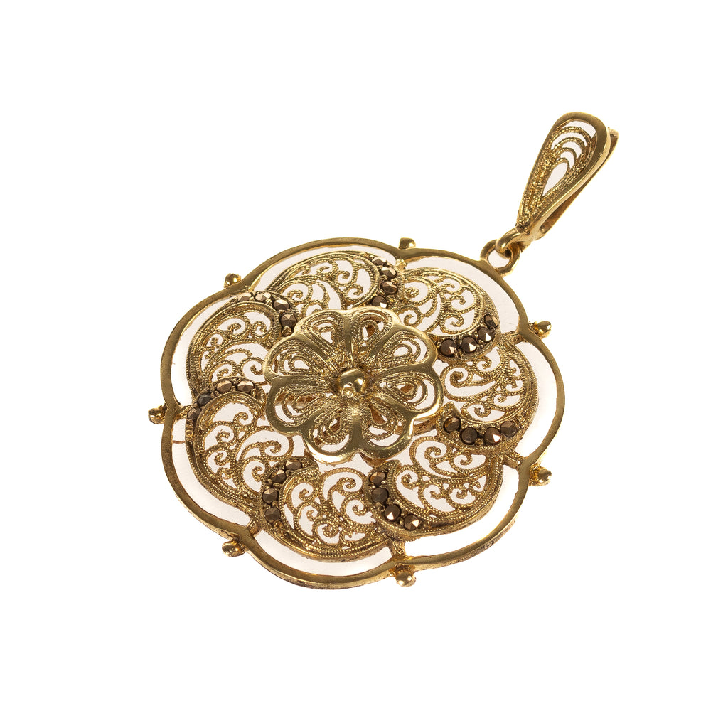Anhänger Filigrantechnik Silber 835 vergoldet mit Markasiten um 1910 (D3508)