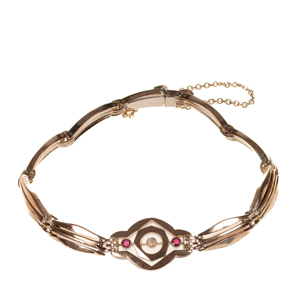 Jugendstil Armband in Doublé mit Opal und roten Steinen (D3543)