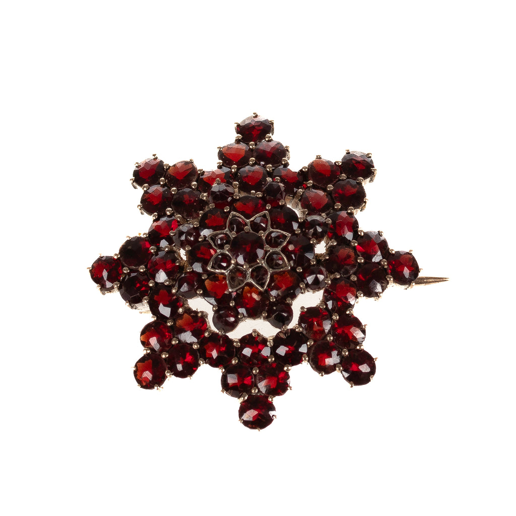 Historismus Granat Brosche in Tombak um 1890 (D3547)