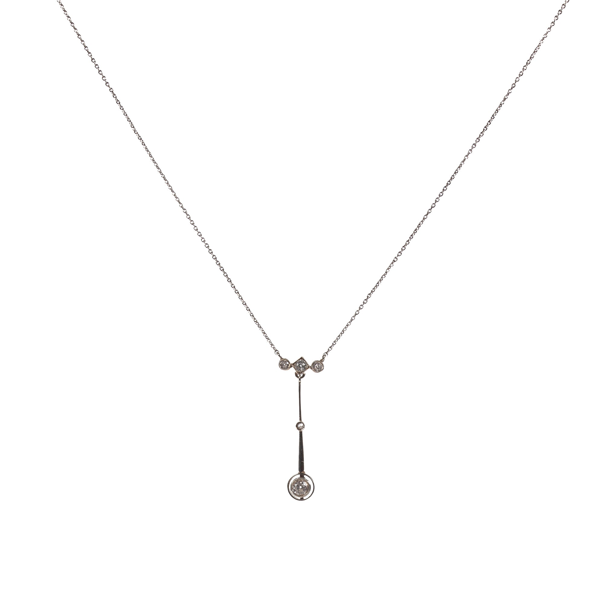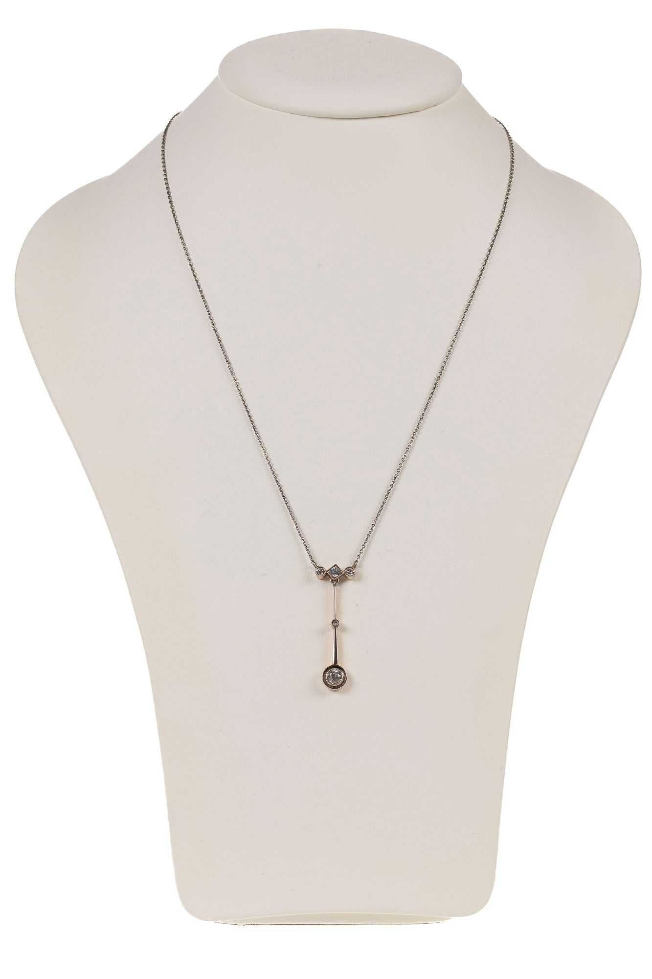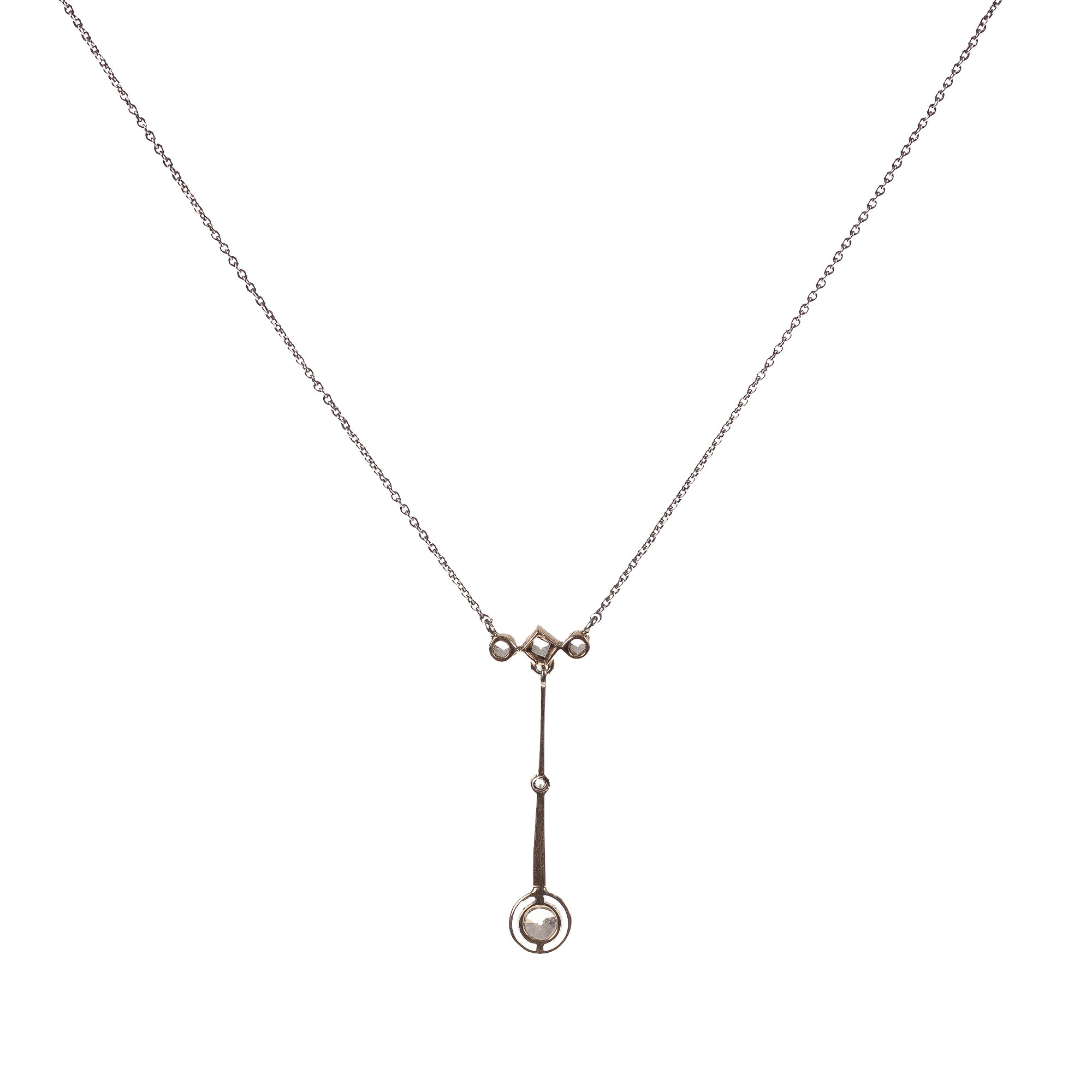 Jugendstil Collier Gold 585 und Platin mit weißen Steinen 43 cm um 1910 (D3586)
