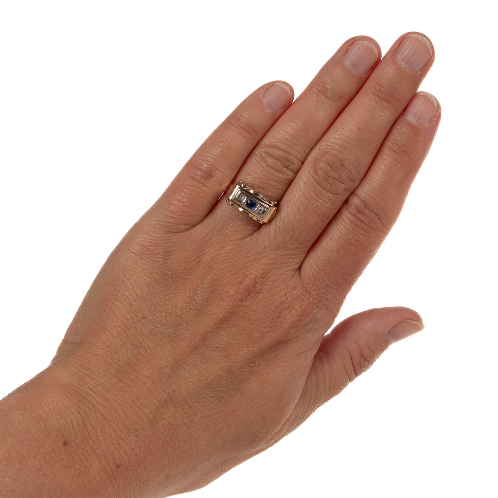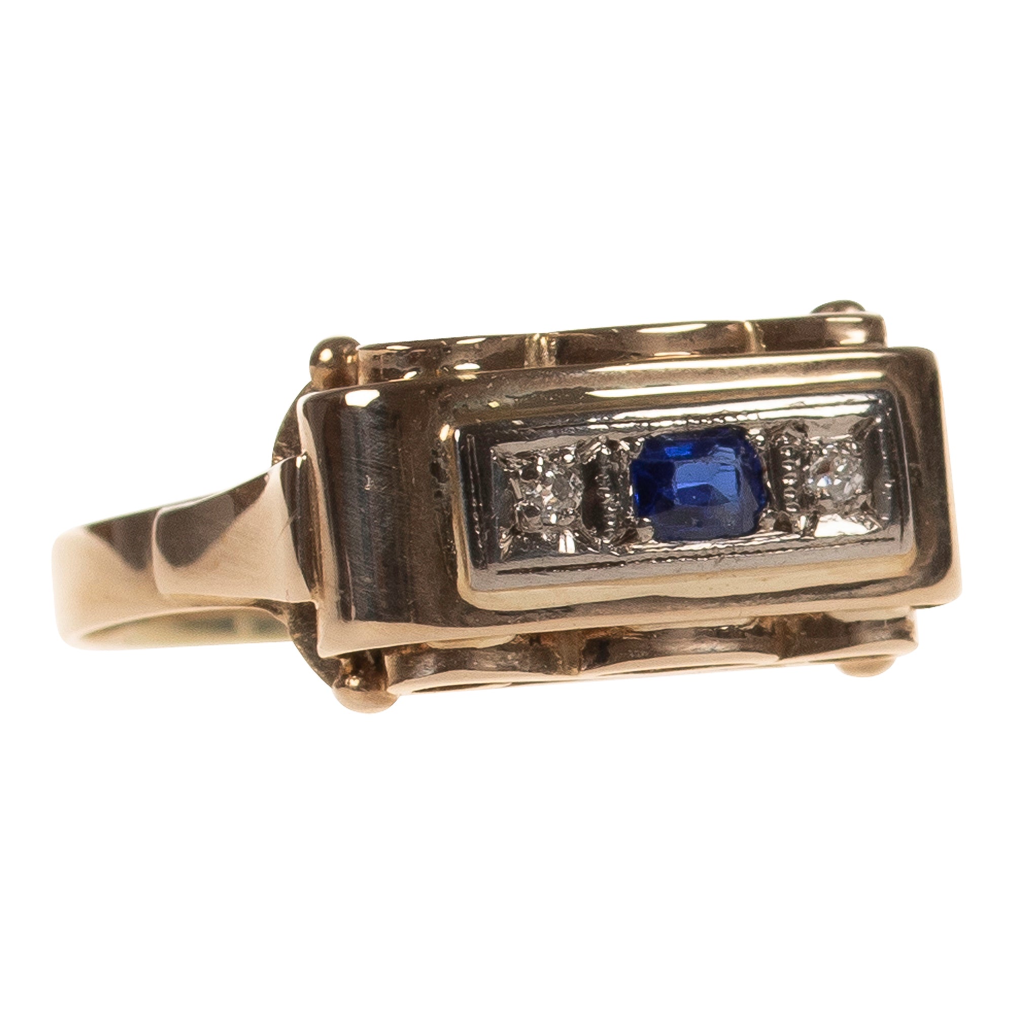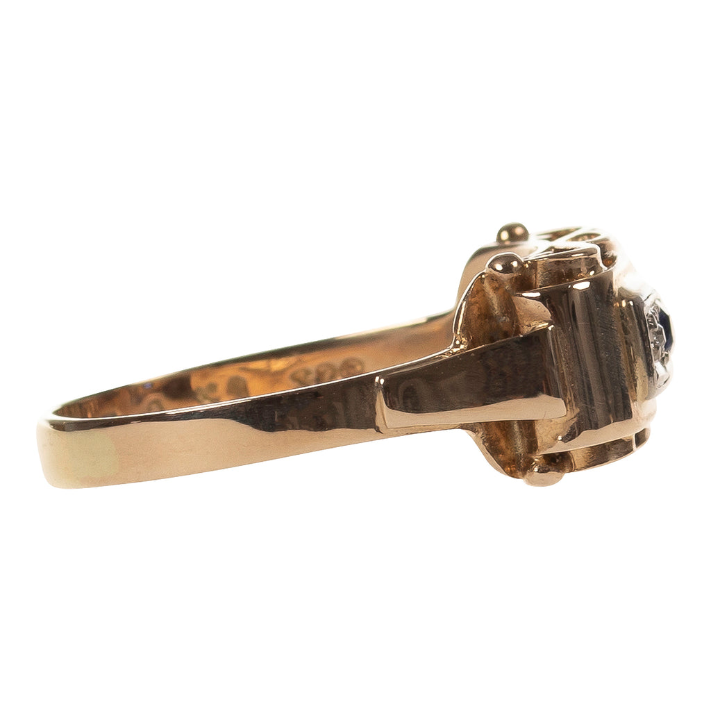 Art deco Ring in Gold 585 mit Saphir & Diamanten Gr. 55/ 17,5 mm (D3534)