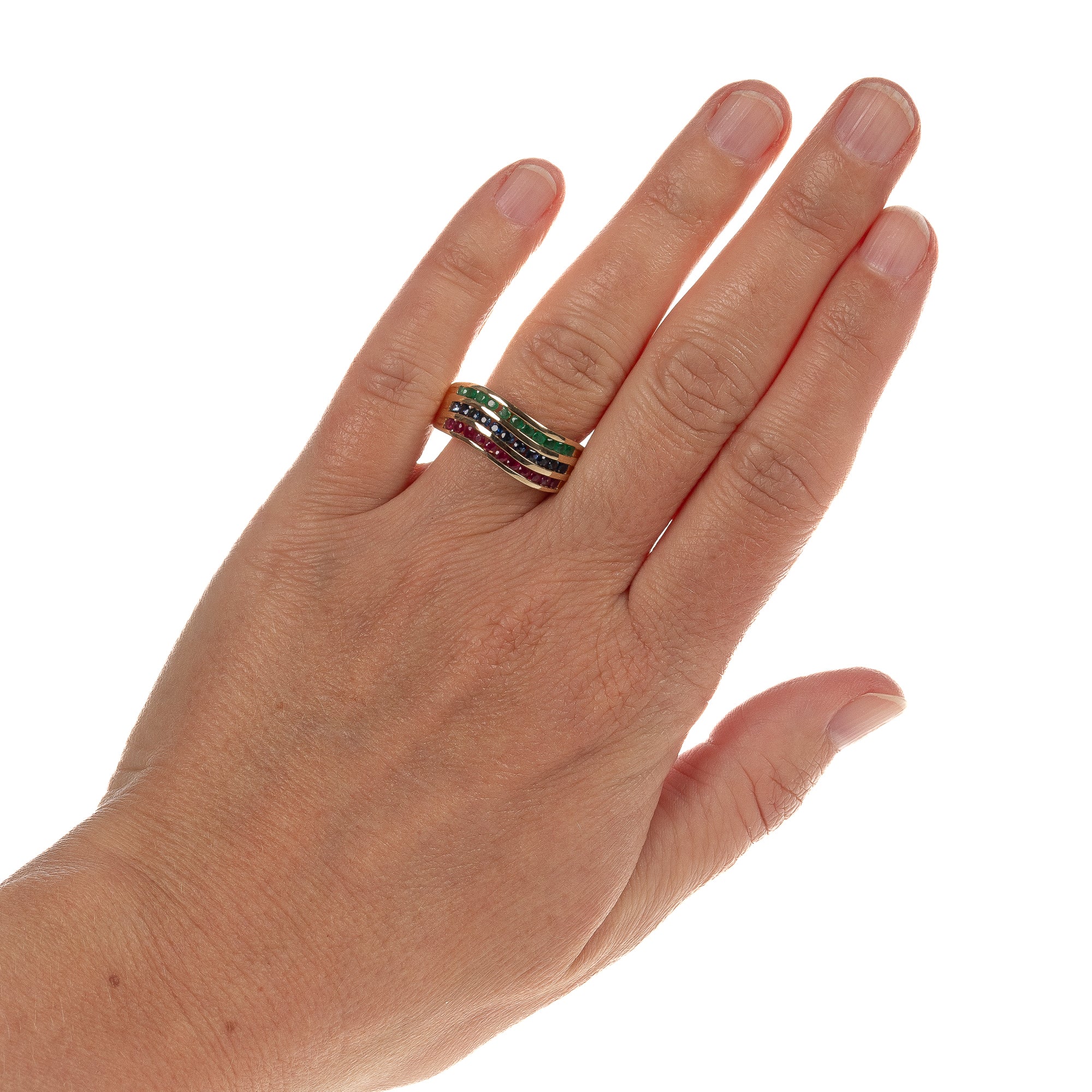 Damen Ring in Gold 585 mit Rubin Saphir Smaragd Gr. 59/18,8 mm (D3550)