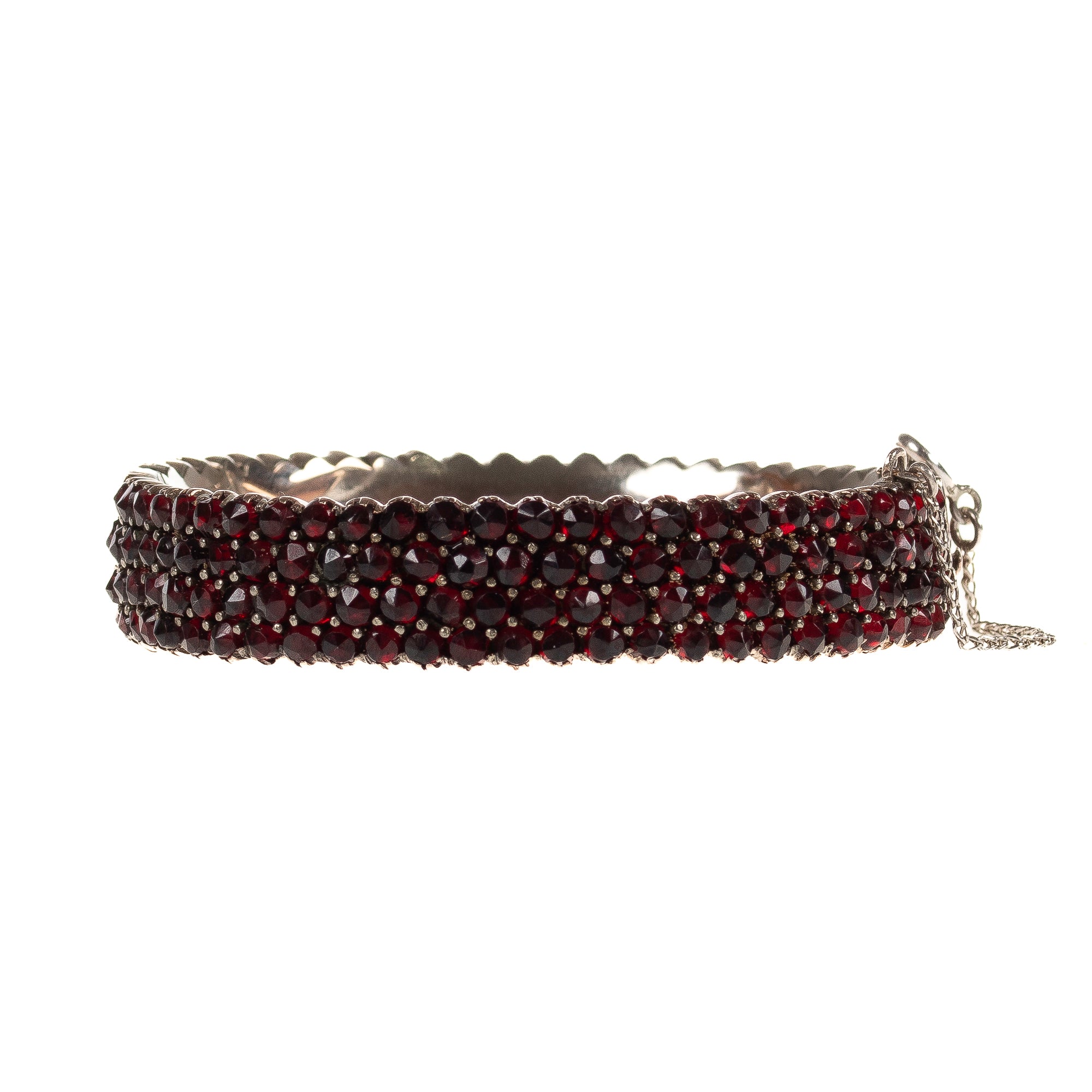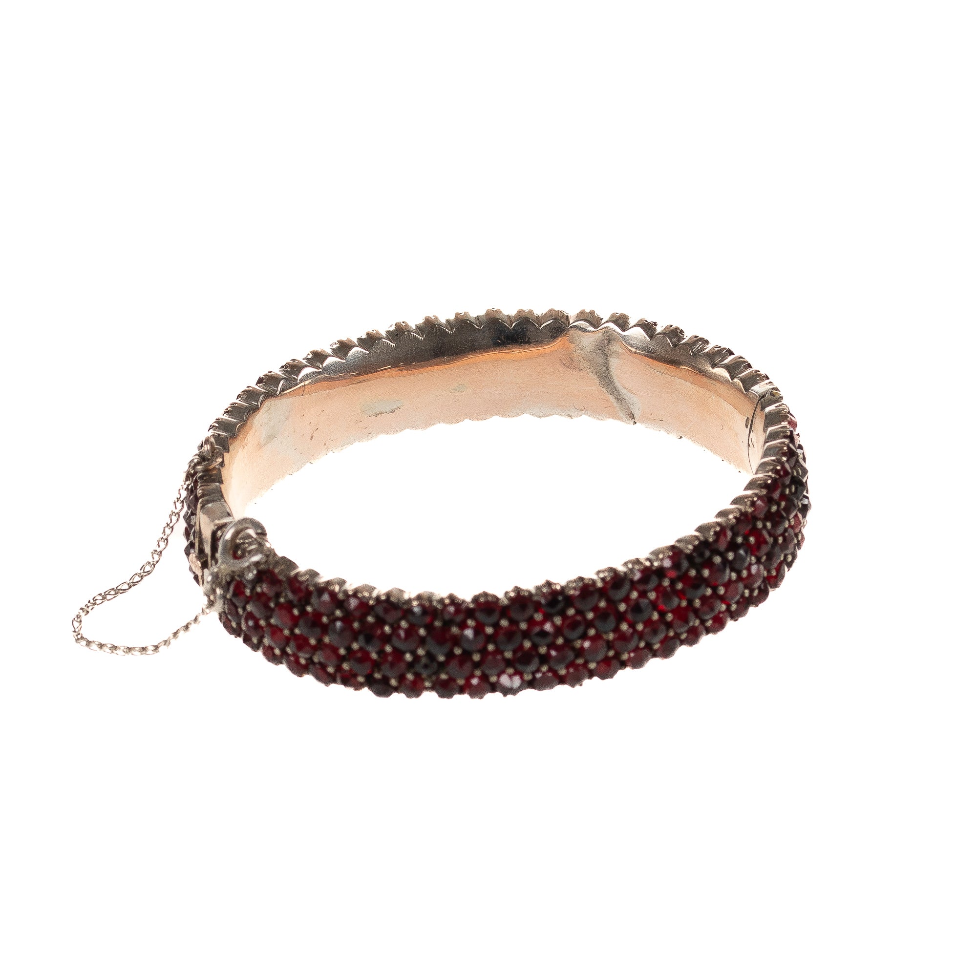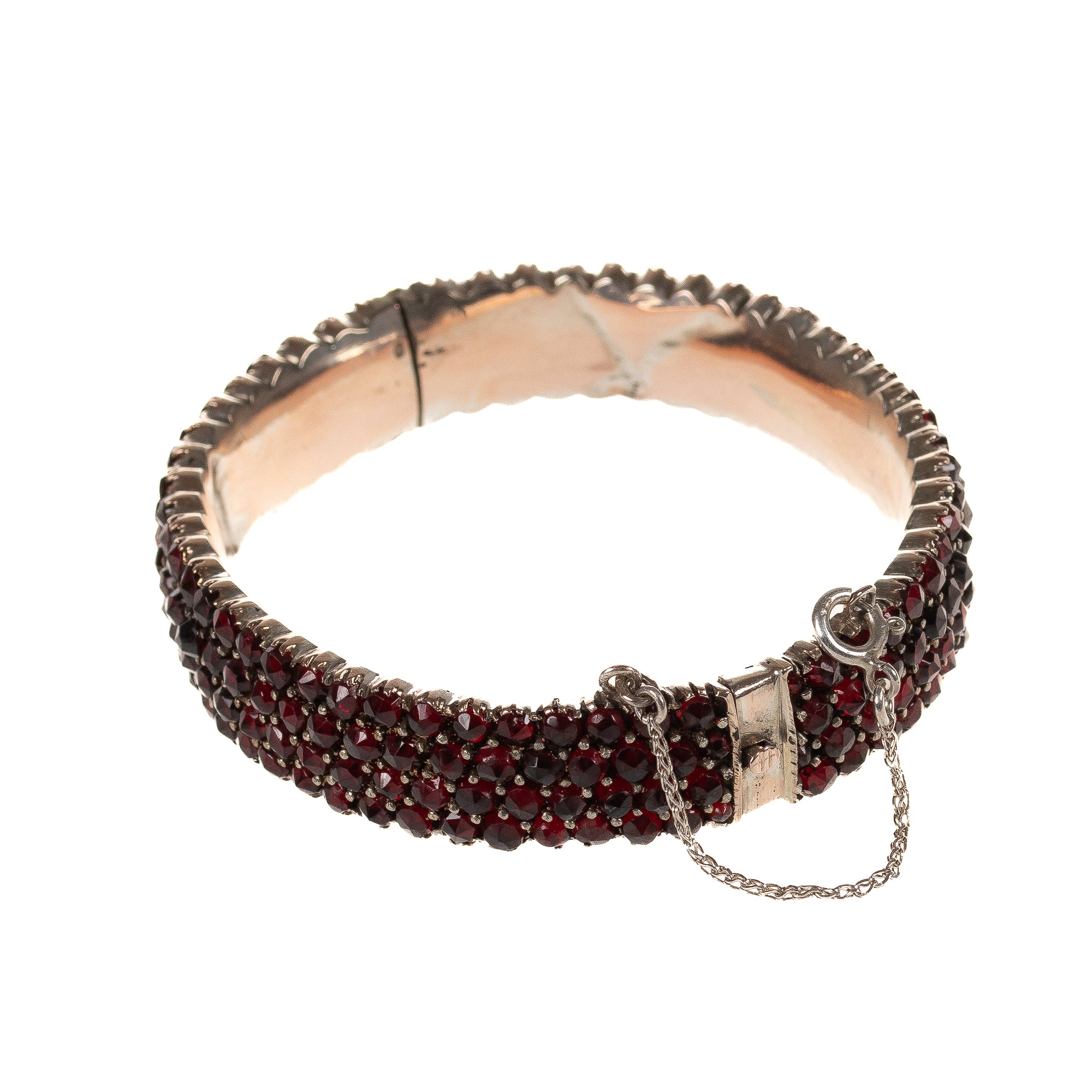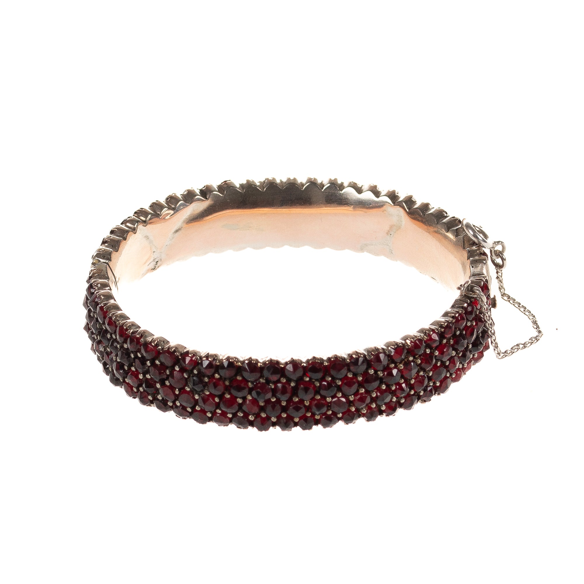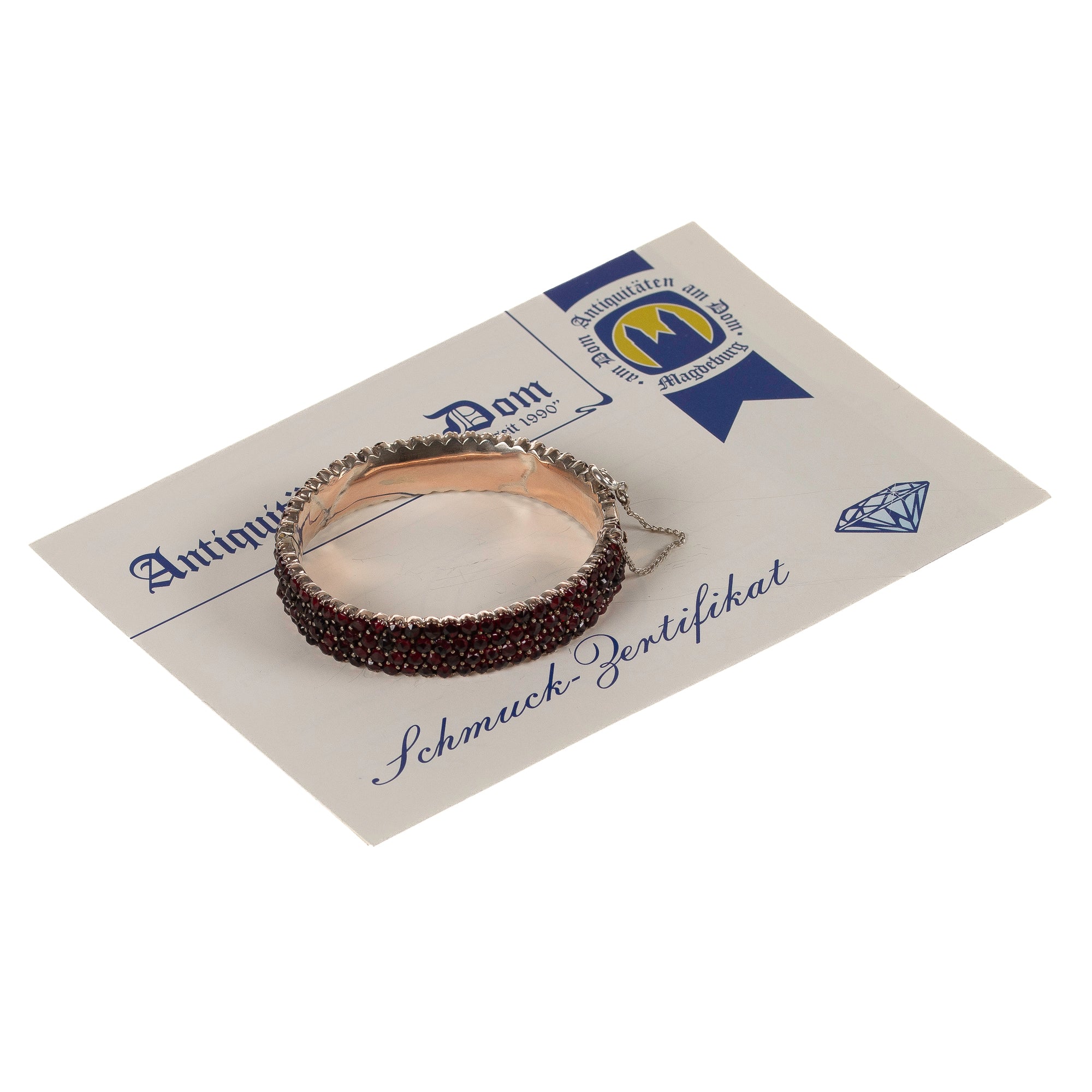 Historismus Granat Armreif in Tombak Böhmen um 1880 (D3612)