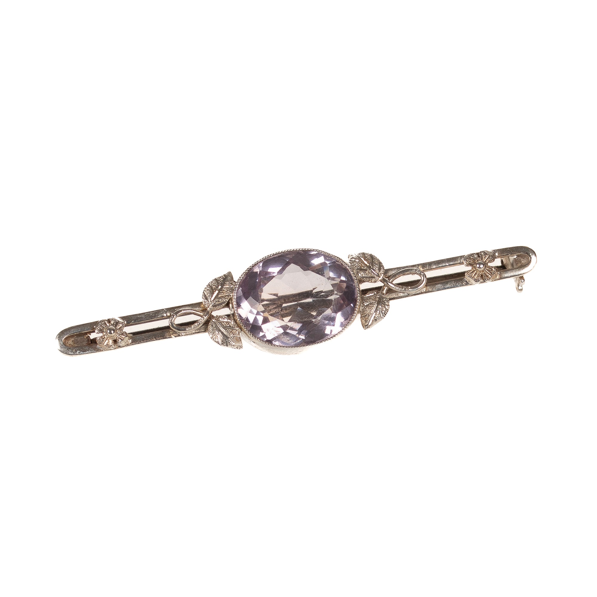 Jugendstil Brosche in Silber 900 mit Amethyst um 1910 (D3620)