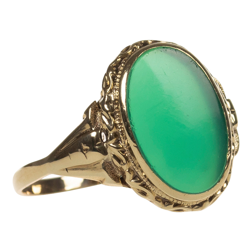 Ring in Gold 585 mit Grünachat um 1900 Gr. 63/ 20,0 mm (D3533)