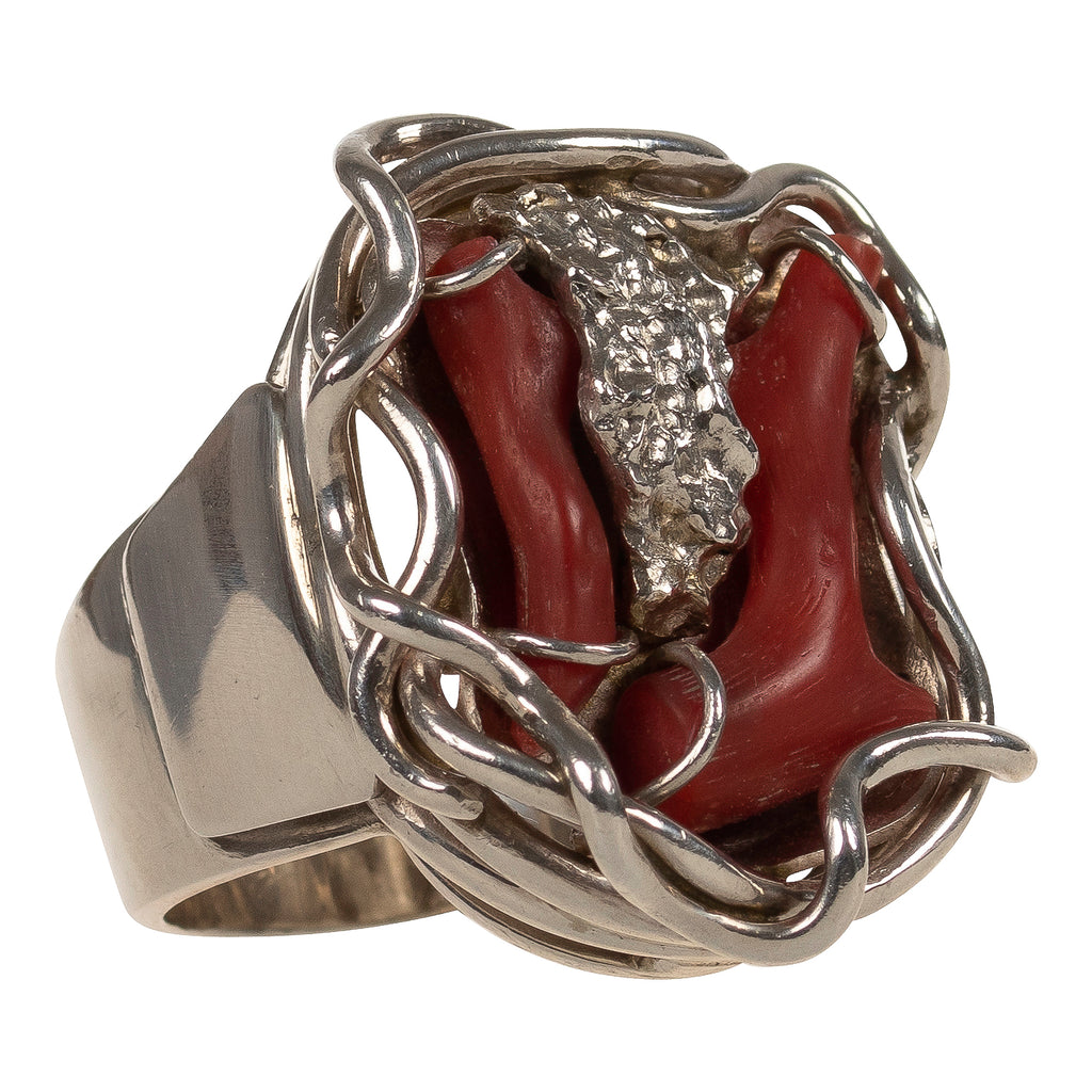 Damen Ring in Silber 925 mit Astkoralle Gr. 61/ 19,4 mm (D3537)