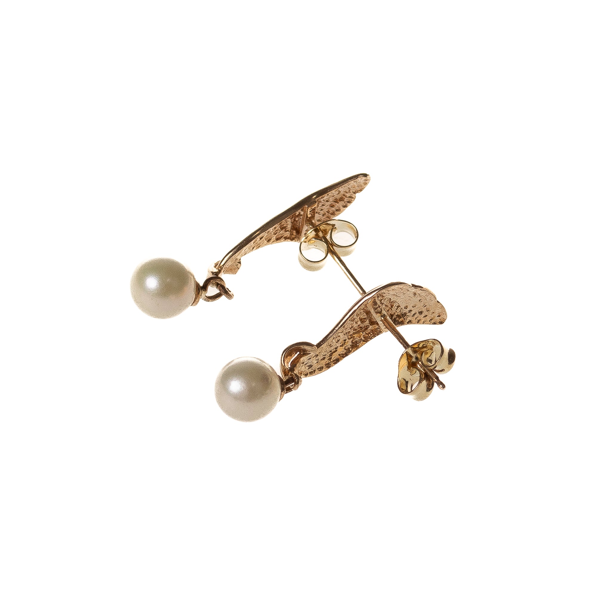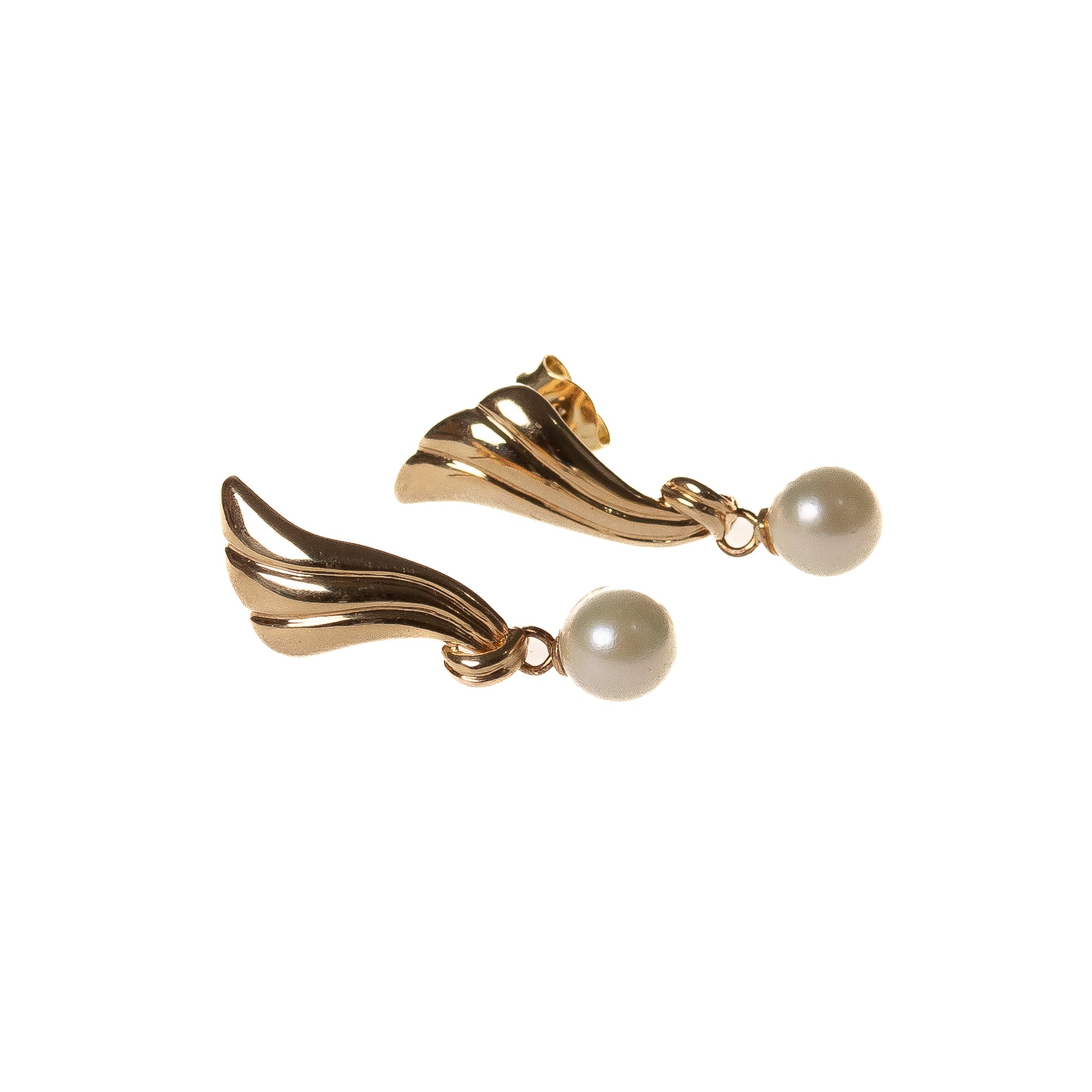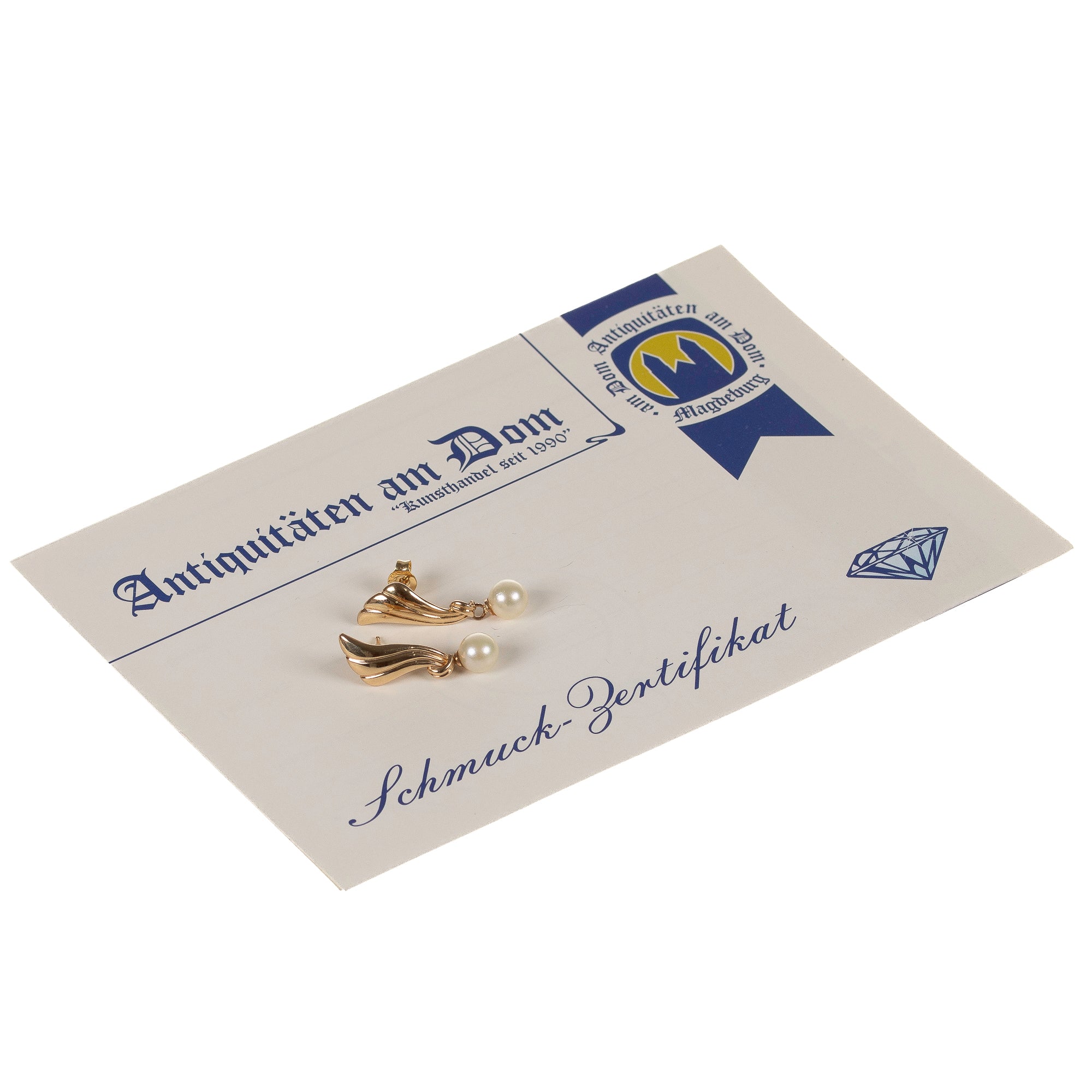 geschwungene Ohrstecker mit Akoyaperle in Gold 585 (D3598)