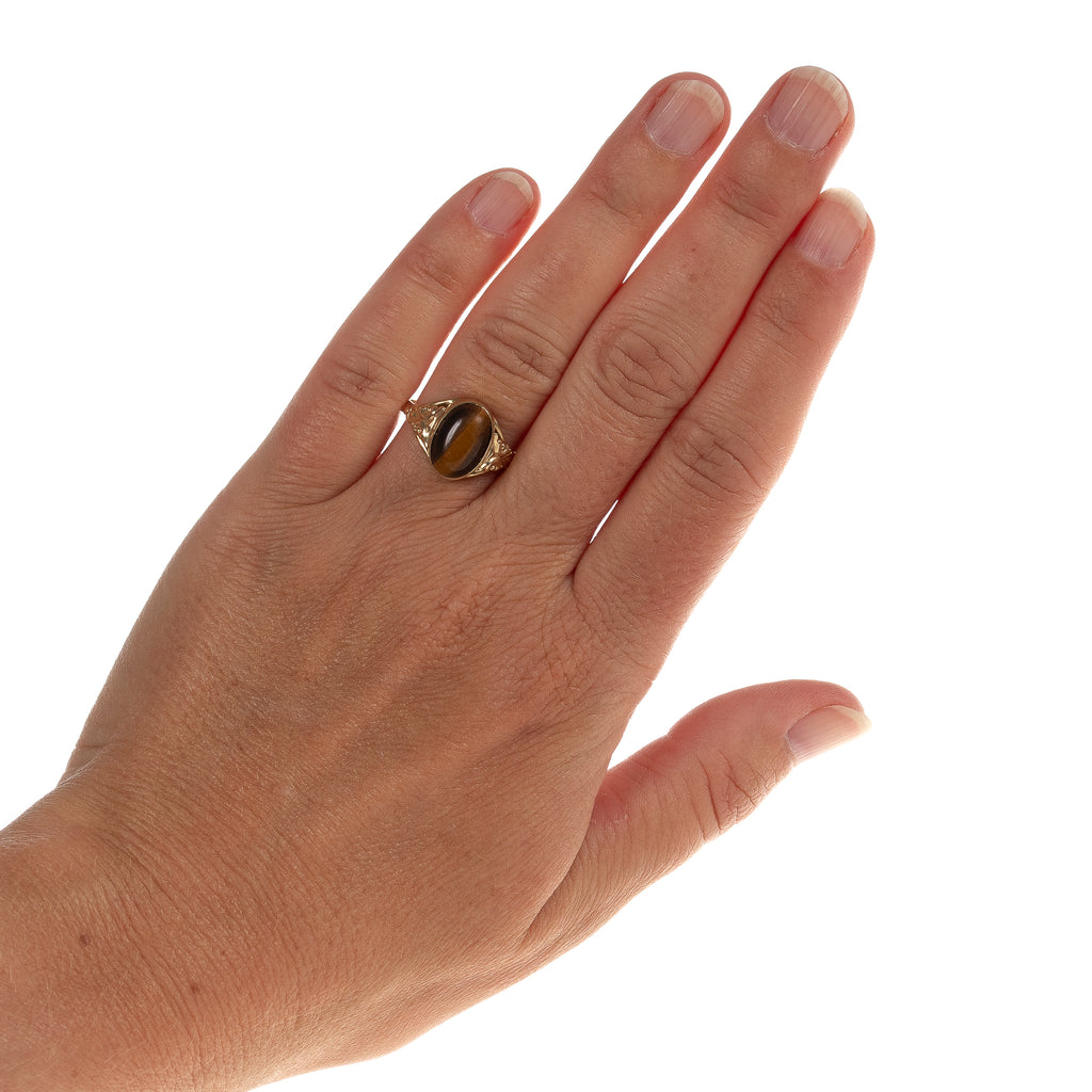 Ring in Gold 333 mit Tigerauge Cabochon Gr. 58/ 18,4 mm (D3497)