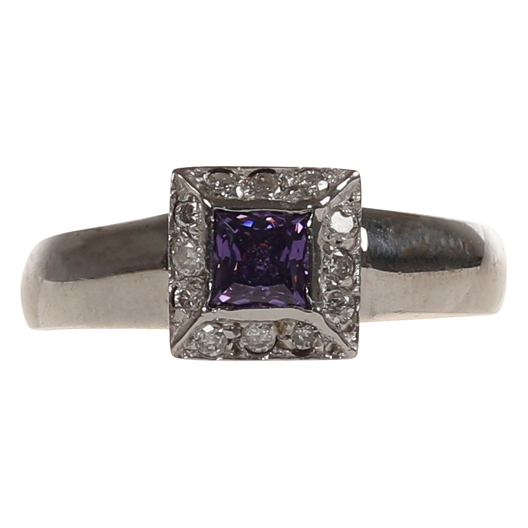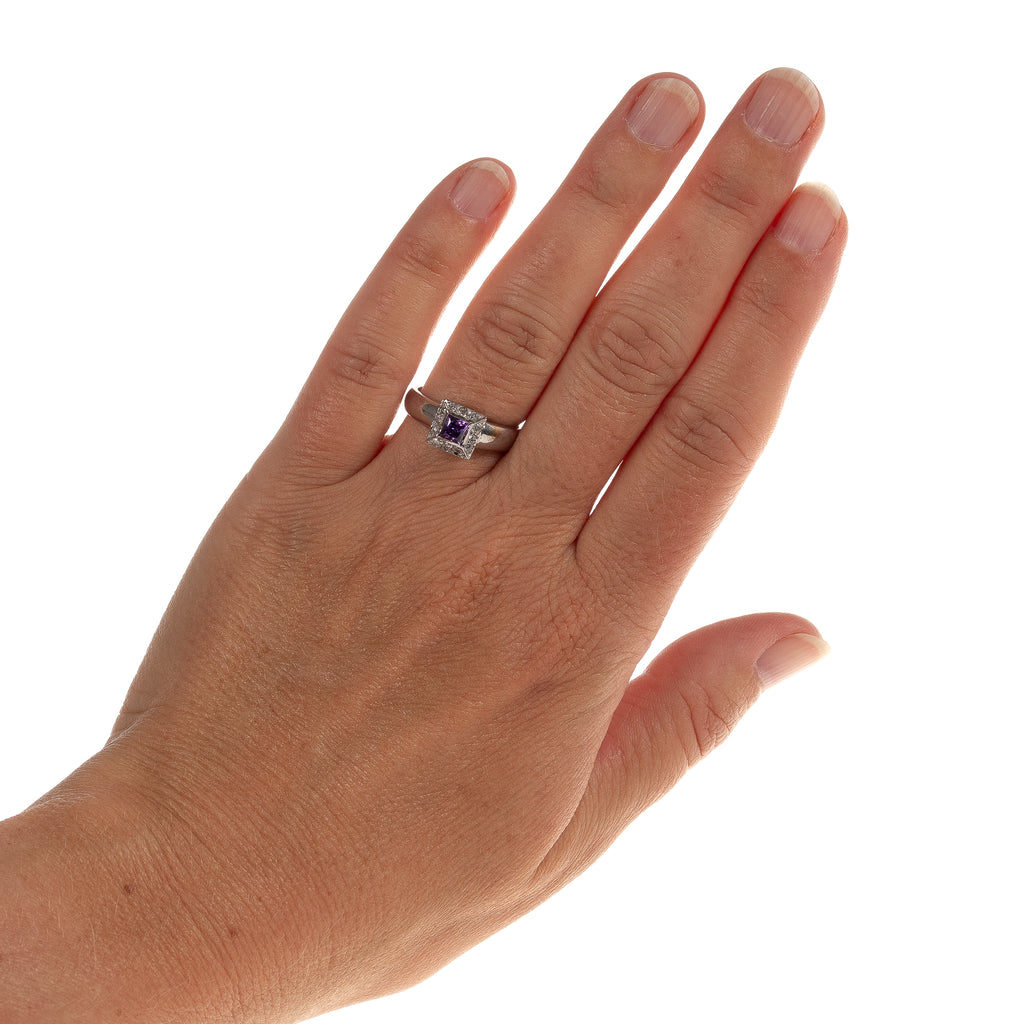 - mit Amethyst (4 x 4 mm) umgeben von 12 Brillanten (zus. ca. 0,18 ct. )