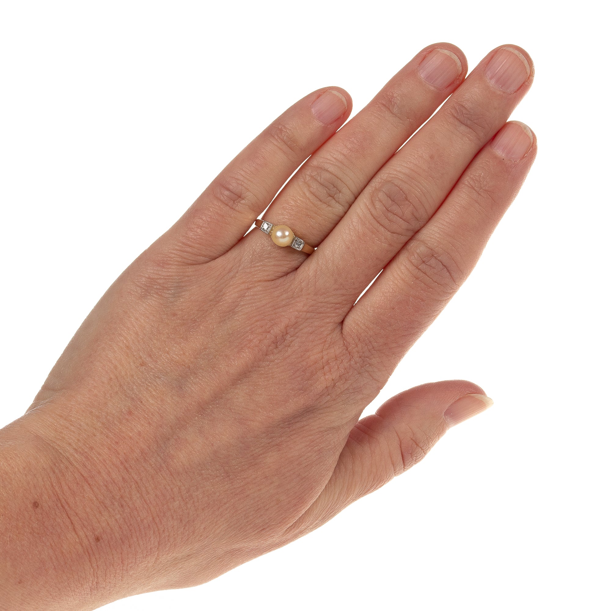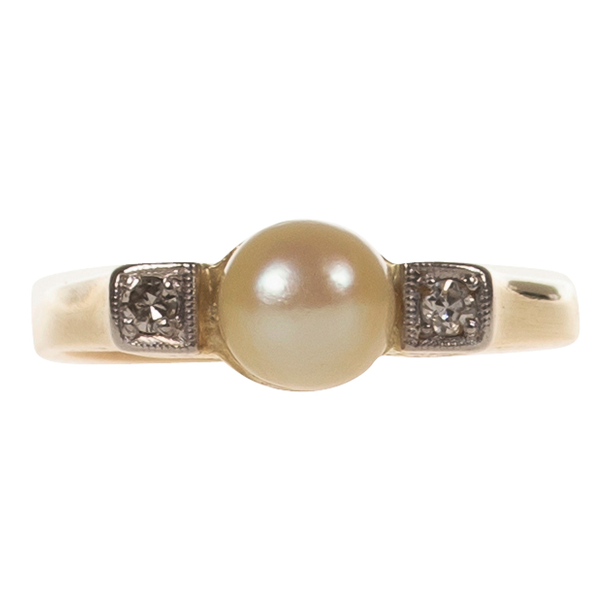 Art deco Ring in Gold 585 mit Perle & Diamanten Gr. 50/15,9 mm (D3735)