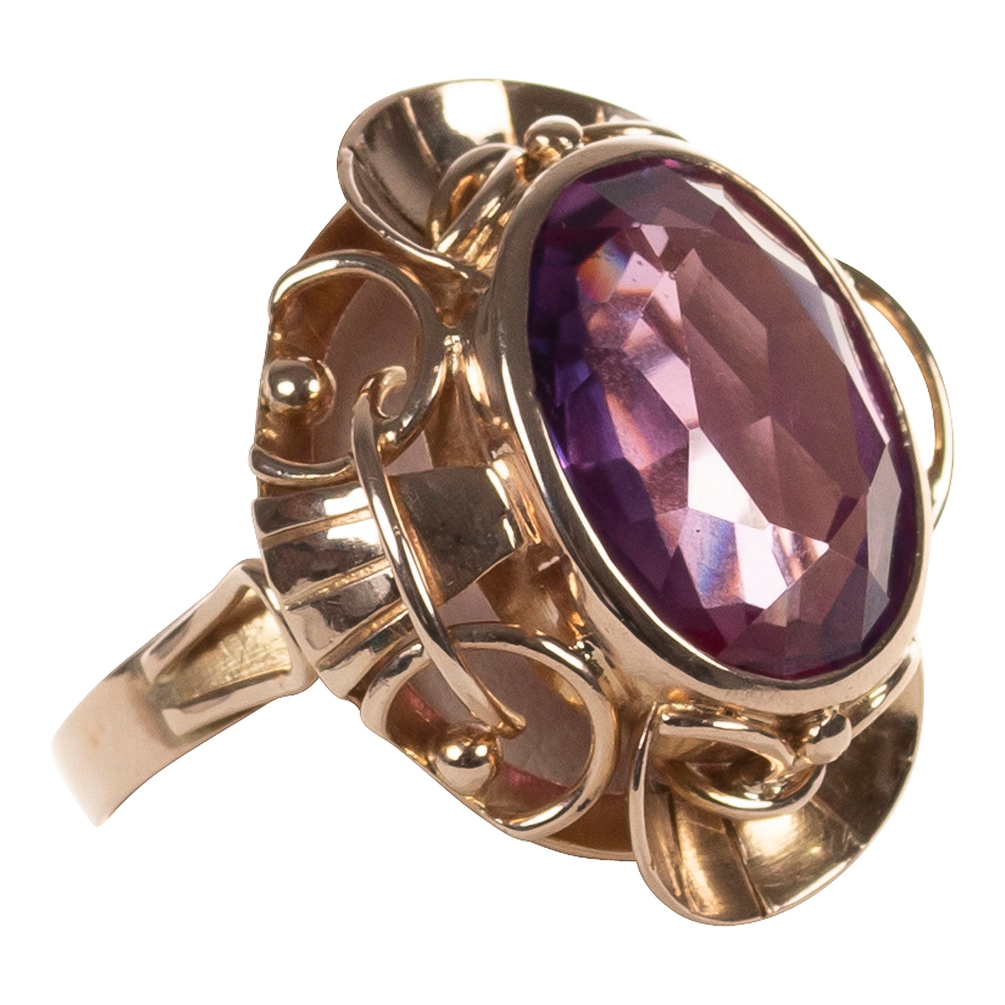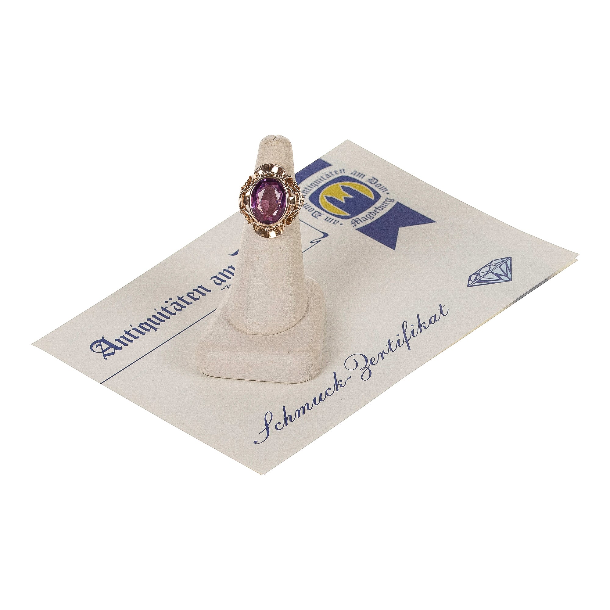 Retro Damen Ring in Gold 333 mit lila Stein Gr. 53/16,8 mm (D3734)